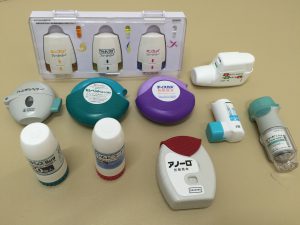治療に使用する内服薬、吸入薬、貼付薬、注射薬は多岐にわたります。治療薬の選択、適切な吸入が可能となるように補助器具を使用した吸入方法、多岐にわたる吸入ステロイドの特性などについての具体的な説明をさせていただいております。